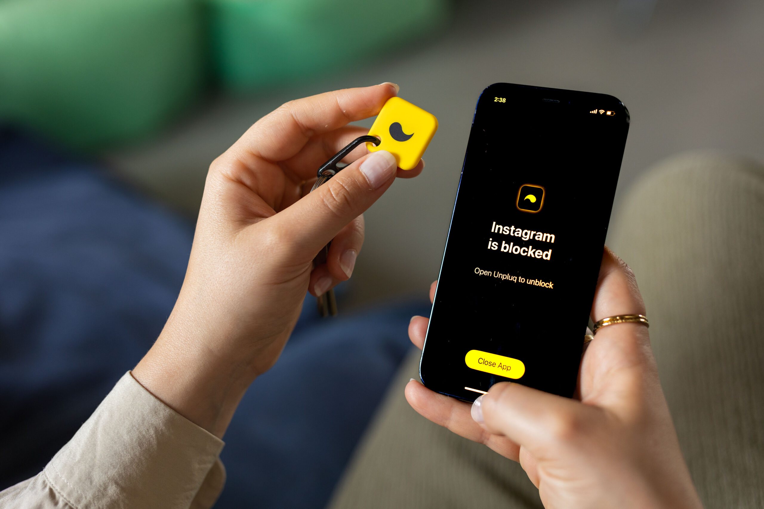 Unpluq is a simple physical tag that connects to your phone to help reduce screen time and limit doomscrolling. Choose which apps you want to lock. Without the tag, they remain blocked.